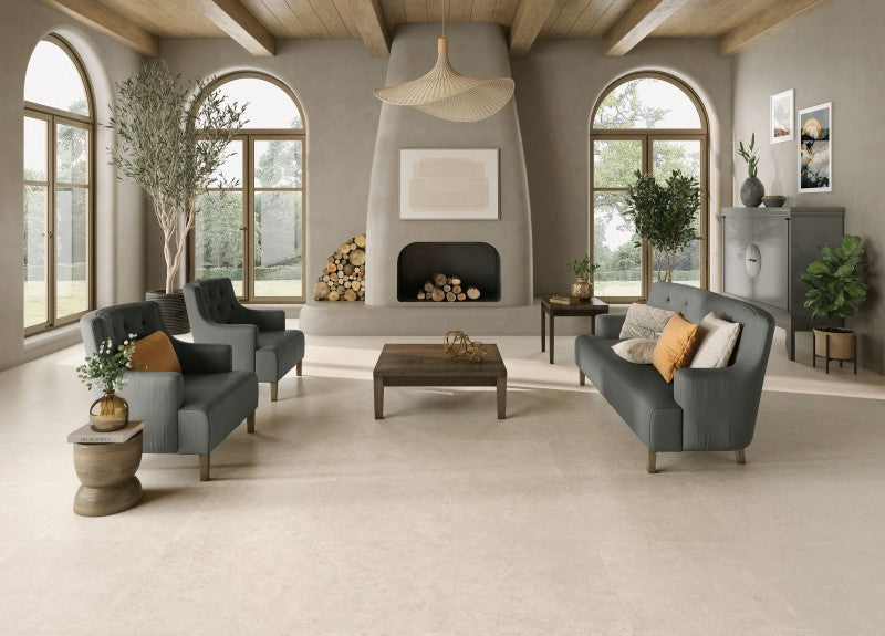 Kauniin pehmeä harmaabeige sävy, jossa kalkkikiven eleganssi sulautuu moderneihin tiloihin. Geo-sarjan luonnollinen pinta tekee tästä laattavalinnasta monikäyttöisen.
